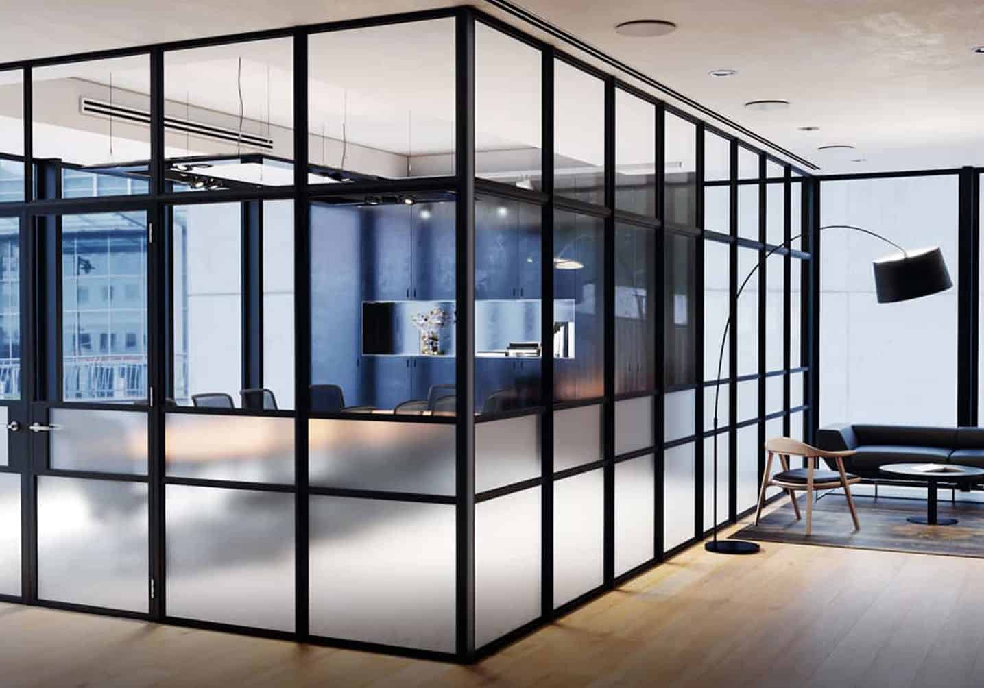 Whether in a commercial or residential setting, corner configurations can be made to create entire new rooms, whether it be a breakaway room or boardroom. They are made up of single doors, French doors, fixed screens and a corner post. The configuration is your choice.